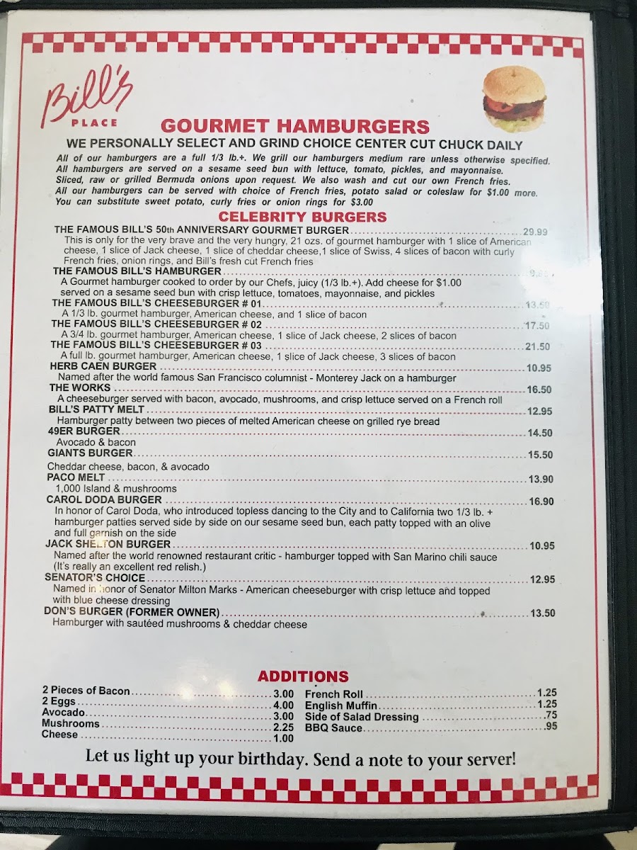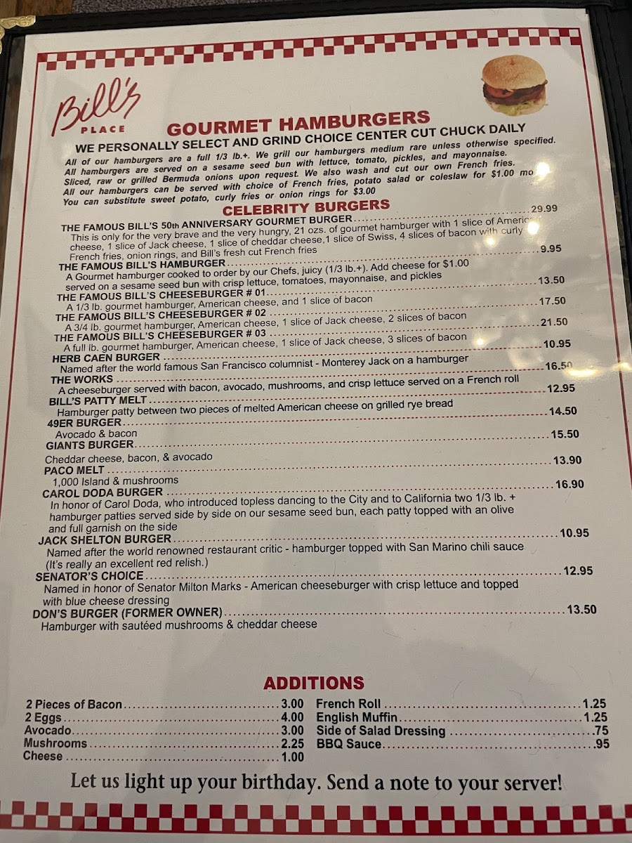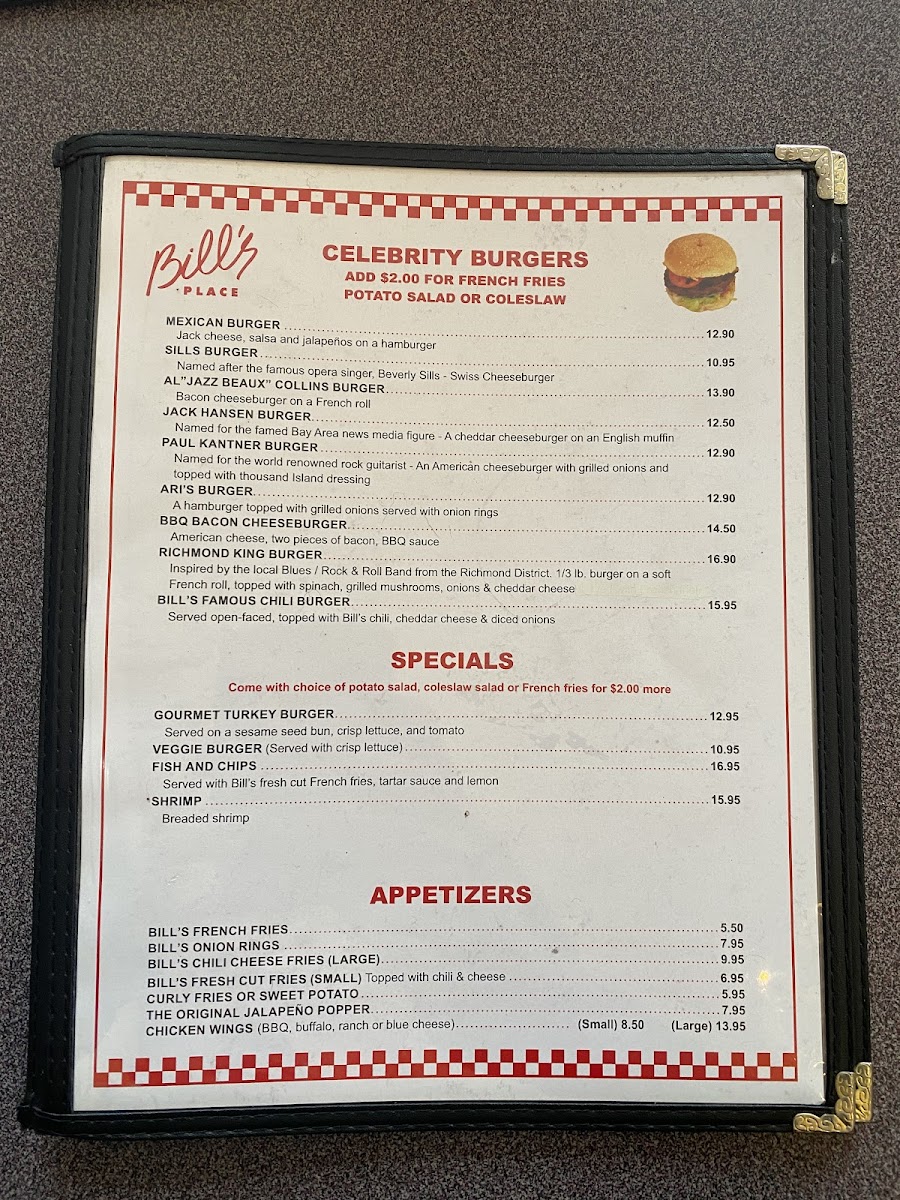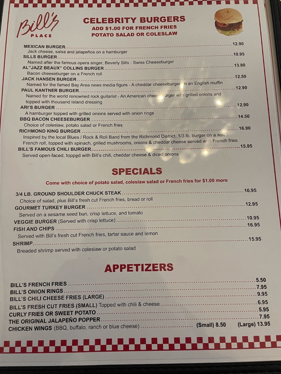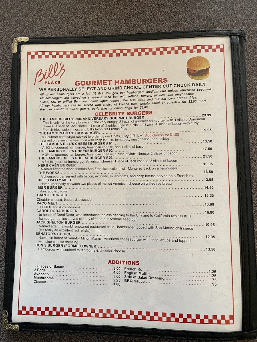 Welcome to Bill's Place, an iconic hamburger restaurant nestled in the vibrant heart of San Francisco at 1919 2315 Clement St. This beloved spot has been serving up delicious bites for over 60 years, making it a cherished destination for both locals and visitors. With a focus on quality ingredients and a welcoming atmosphere, Bill's Place undoubtedly lives up to its reputation.